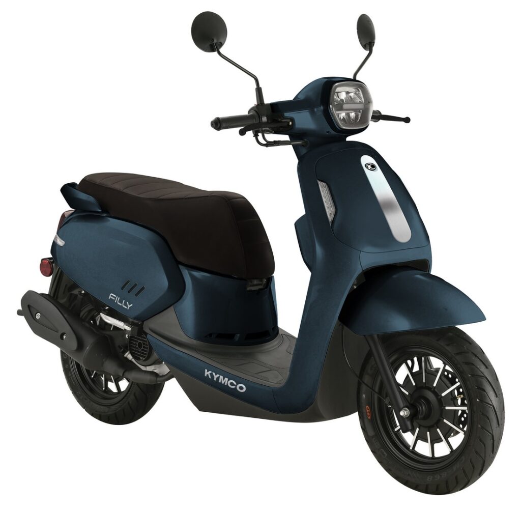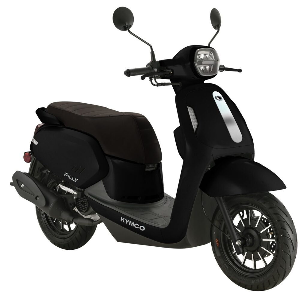 Leverbaar in de kleuren Mat Rood, Mat Blauw, Mat Zwart en Mat wit voor € 2.148 exclusief achterdrager en SHAD33 topkoffer in bijpassende kleur. Inclusief koffer en kofferdrager bedraagt de Kymco Filly €2.298.